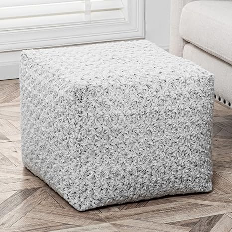 Unstuffed Fur Ottoman Stool Footstool Cover Floor Pouf Foot Rest 18x18 In Square Poof Seat Floor Bean Bag Chair Foldable Floor Chair Storage For Living Room Bedroom Light Grey Pouf Cover Amazon Ca Home